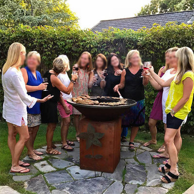 Customized BBQ Fire Table With Center Grate is made with good quality weathering corten steel material, you can adjust the BBQ height according to your need, this is very easy and convenient to realize.